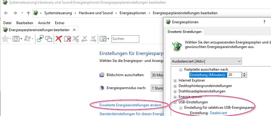 Energiesparoptionen für USB deaktivieren: