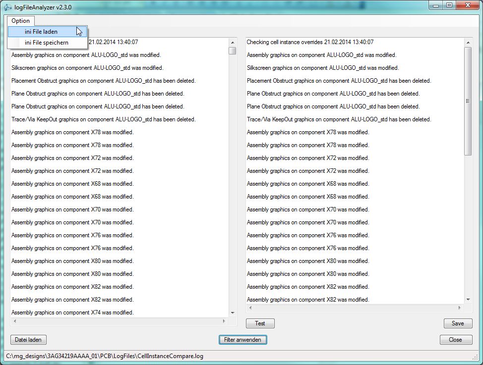 - Schaltfläche "Datei laden" des logFileAnalyzers, deren Inhalt gefiltert